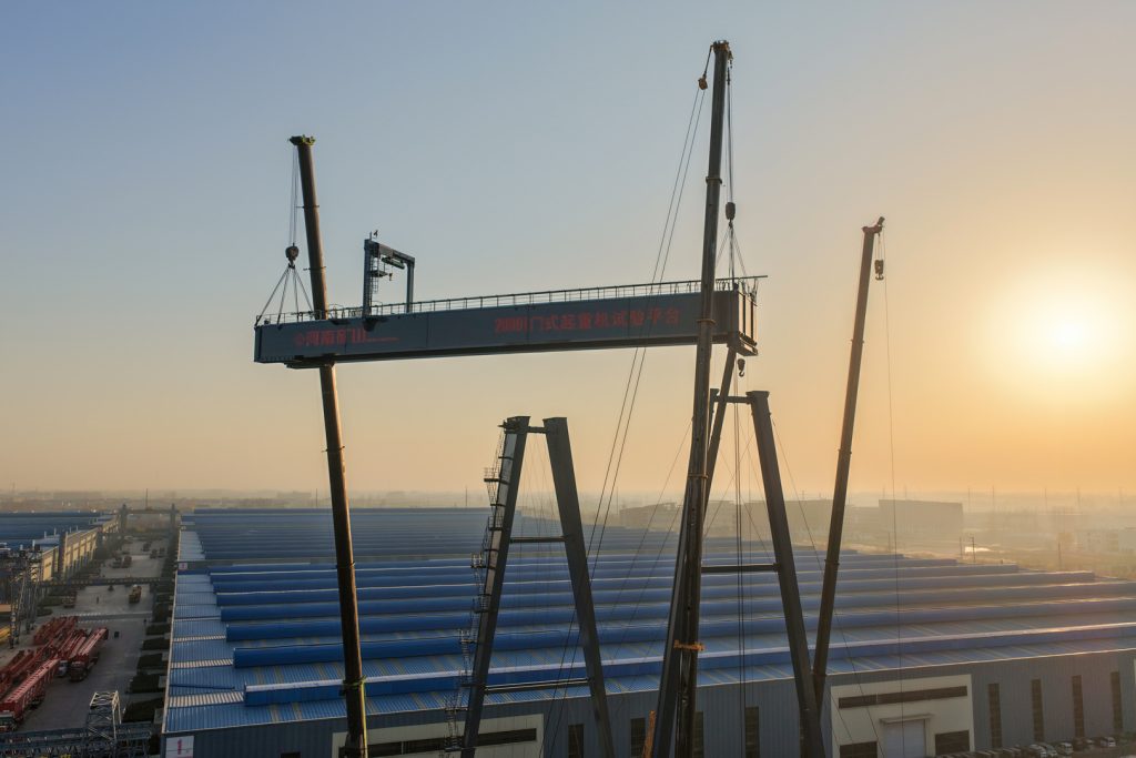 11月29日,河南矿山2000t门式起重机试验平台主梁在公司智能产业园顺利起吊。